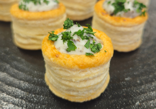 ① ベシャメルソースとデュクセルドシャンピニオンを3対1で合わせる。